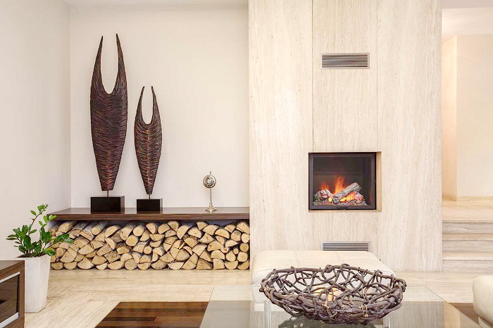 В очаге предусмотрена функция контроля интенсивности пламени. Для удобства предусмотрен пульт дистанционного управления.