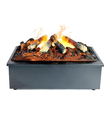 Модель отличается реалистичным 3D-пламенем. Имитацию огненных языков обеспечивает водяной пар, который снизу подсвечивается светодиодными лампами и поднимается ввысь сквозь муляж дров с текстурой горящих поленьев.