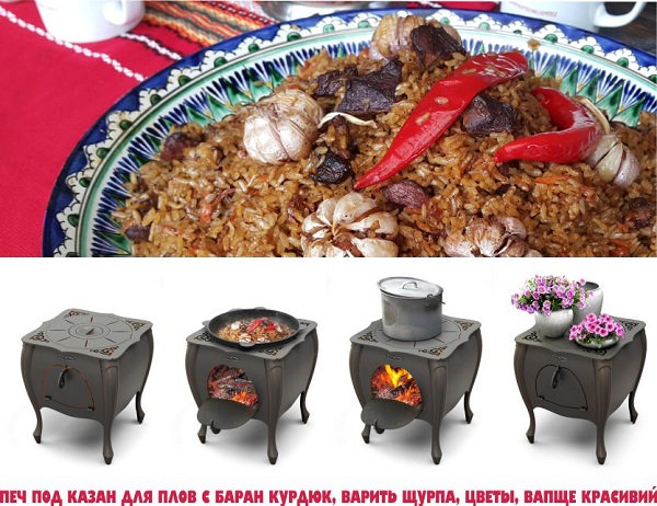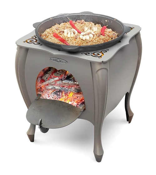 Главное предназначение «Зухры» – это приготовление блюд в казане. Наличие варочного настила позволяет вскипятить большой чайник, приготовить шурпу, лагман, уху и другие блюда загородной летней кухни в кастрюле или на сковороде. Благодаря съёмным чугунным кружкам, вы сможете приспособить свою посуду под нужный размер.