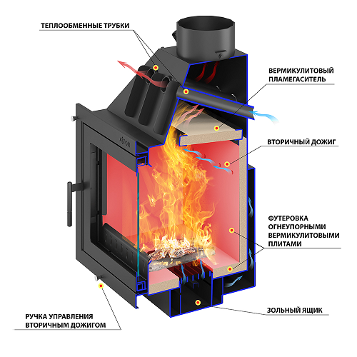 Материал футеровки топки:шамотные плиты, 40 мм