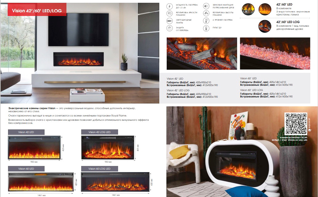 Современный линейный камин от бренда Royal Flame – Vision 42 LED сочетает стильный дизайн и эффективную систему обогрева.