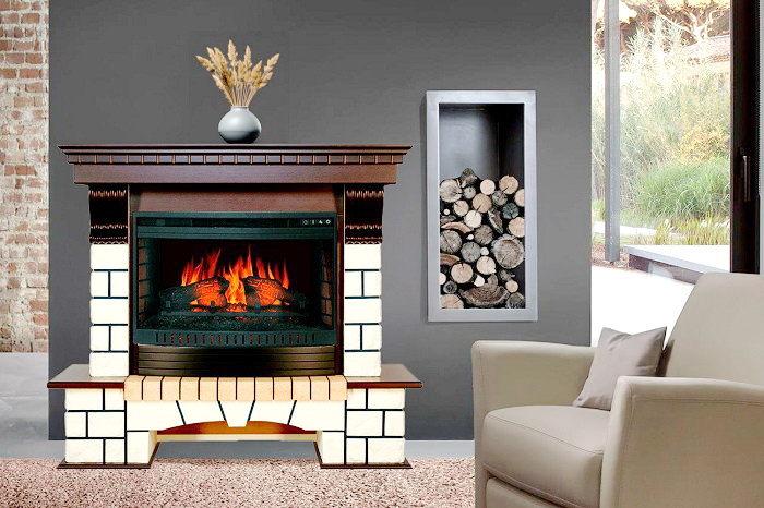 Это встраиваемая модель, для которой можно подобрать подходящий портал или выделить нишу в стене. В обоих случаях он будет смотреться гармонично и дополнять собой интерьер
