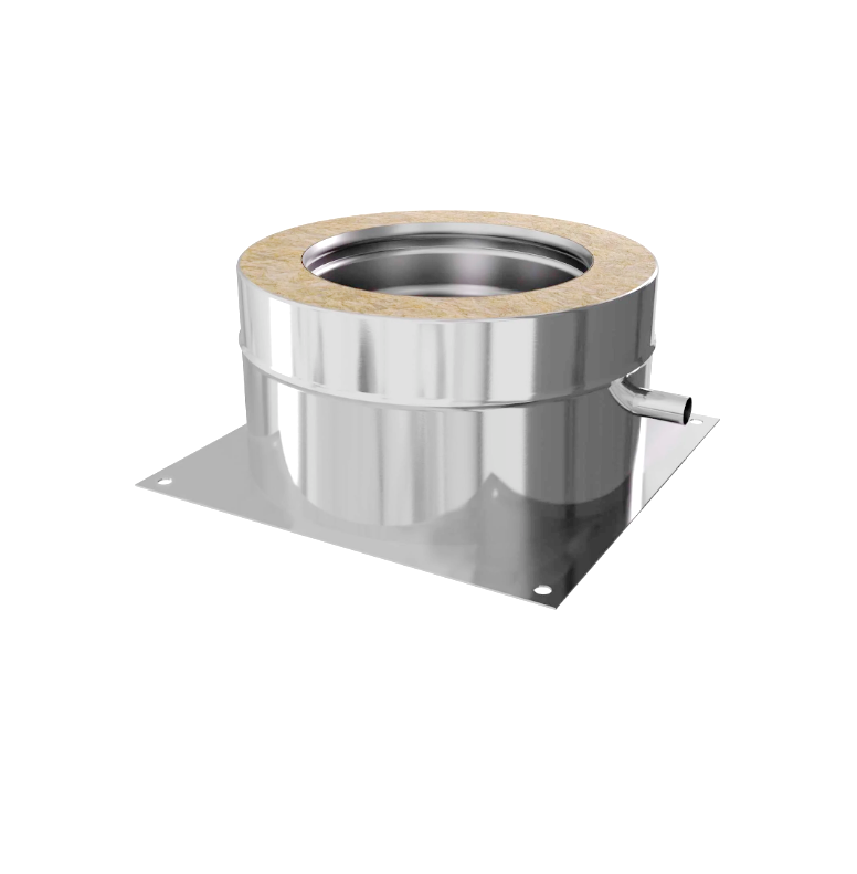 Утепленный элемент для перераспределения веса дымохода. Используется для установки ТОЛЬКО на пол (на ровные твердые поверхности). Внутренний контур изготовлен из коррозионностойкой нержавеющей стали AISI 316L толщиной 0,8 мм. Внешний контур выполнен из аустенитной стали AISI 304 толщиной 0,5 мм. Теплоизоляция - из базальтовой ваты, это позволяет свести к минимуму образование конденсата и будет способствовать быстрому прогреву дымоходного канала и выходу системы в рабочий режим. Холодная формовка раструбного соединения с идеальной геометрией и газоплотностью. Лазерная сварка встык обеспечивает тонкий и прочный шов, увеличивая в разы срок эксплуатации. Рабочая температура до 600°С.