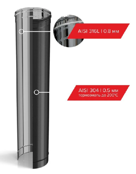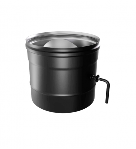 Элемент для регулировки тяги внутри дымового канала. Согласно требованиям безопасности, заслонка полностью не перекрывает сечение канала. Изготовлен из коррозионностойкой нержавеющей стали AISI 316L, окрашен матовой черной термостойкой эмалью, что исключает появление следов побежалости. Толщина стенки 0,8 мм. Холодная формовка раструбного соединения с идеальной геометрией и газоплотностью. Лазерная сварка встык обеспечивает тонкий и прочный шов, увеличивая в разы срок эксплуатации. Рабочая температура до 600°С.