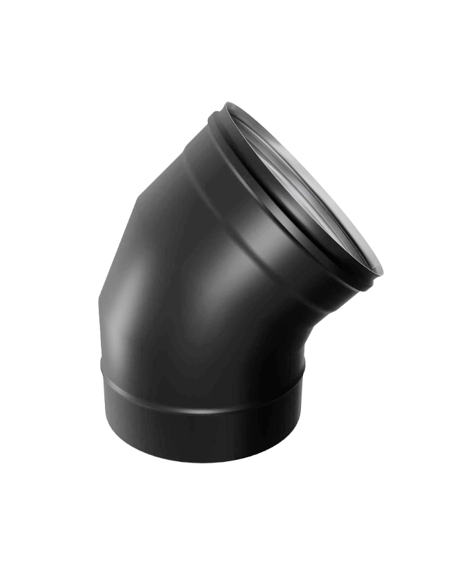 Элемент предназначен для изменения направления дымового канала и обхода препятствий во время монтажа. Изготовлен из коррозионностойкой нержавеющей стали AISI 316L, окрашен матовой черной термостойкой эмалью, что исключает появление следов побежалости. Толщина стенки 0,8 мм. Холодная формовка раструбного соединения с идеальной геометрией и газоплотностью. Лазерная сварка встык обеспечивает тонкий и прочный шов, увеличивая в разы срок эксплуатации. Рабочая температура до 600°С.