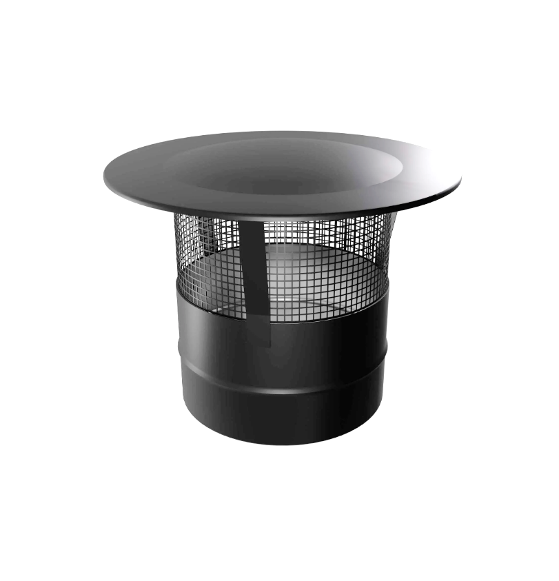 Завершающий элемент дымового канала. Помимо защиты от атмосферных осадков и листвы, препятствует вылету искр из дымоходного канала. Изготовлен из коррозионностойкой нержавеющей стали AISI 316L, окрашен матовой черной термостойкой эмалью, что исключает появление следов побежалости. Толщина стенки 0,8 мм. Холодная формовка раструбного соединения с идеальной геометрией и газоплотностью. Лазерная сварка встык обеспечивает тонкий и прочный шов, увеличивая в разы срок эксплуатации. Рабочая температура до 600°С.