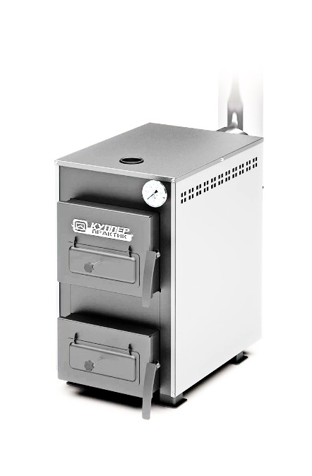 Принцип действия водогрейных котлов модельного ряда «Куппер Практик (1.1)» основан на передаче энергии, высвобождаемой при сжигании топлива, теплоносителю. Эффективность теплообмена достигается благодаря развитой поверхности водяной рубашки, обеспечивающей теплосъём со всех поверхностей топки котла. Конструкция водяного контура способствует созданию направленного потока теплоносителя и исключает застойные зоны. Корпус котла модельного ряда «Куппер Практик (1.1)» изготавливается из качественной конструкционной стали толщиной 3мм. Для обеспечения достаточной прочности водяной рубашки стенки наружного и внутреннего корпусов котла скреплены ребрами жесткости и стяжками. На котлы модельного ряда «Куппер Практик (1.1)» может быть установлен блок из трёх ТЭНов суммарной мощностью 6 кВт, позволяющий поддерживать температуру теплоносителя при завершении горения топлива (в комплект поставки не входит).