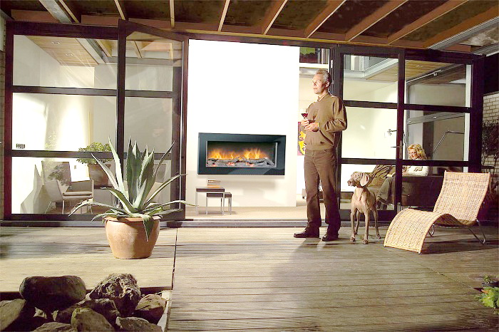 Дрова, находящиеся в очаге, создают эффект мерцания за счет встроенных в них светодиодов.