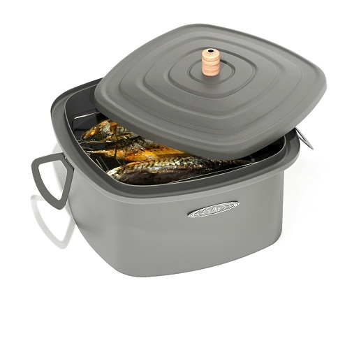 На крышке размещена деревянная ручка с нержавеющей трубкой внутри, через которую излишняя влага выходит из коптильной камеры, чтобы продукты лучше подсыхали во время копчения. Браться за ручку следует осторожно, сбоку, во избежание ожога от пара.