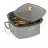 Подставка для решеток позволяет их надежно фиксировать. Сверху имеется удобная ручка. Готовые блюда можно подавать на стол прямо на этой подставке. В ее нижней части есть поддон для сбора жира и сока.