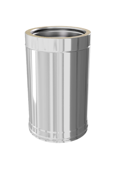 Утепленный элемент предназначен для отвода дымовых газов на неотапливаемых прямолинейных участках дымохода. Важно! За счет раструба полезная длина элемента на 60 мм меньше, чем номинальная. Внутренний контур изготовлен из коррозионностойкой нержавеющей стали AISI 316L толщиной 0,5 мм. Внешний контур выполнен из аустенитной стали AISI 304 толщиной 0,5 мм. Теплоизоляция - из базальтовой ваты, это позволяет свести к минимуму образование конденсата и будет способствовать быстрому прогреву дымоходного канала и выходу системы в рабочий режим. Холодная формовка раструбного соединения с идеальной геометрией и газоплотностью. Лазерная сварка встык обеспечивает тонкий и прочный шов, увеличивая в разы срок эксплуатации. Рабочая температура до 450°С.