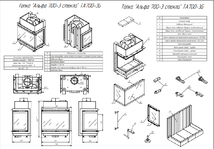 700\12\123кг\С6 мм TA700-3GB Стальная печь ф 200 мм Альфа + ФУТЕРОВКА carbon прямое 400 tri "ЭкоКамин" ДРУГИЕ МОДЕЛИ ВНУТРИ
