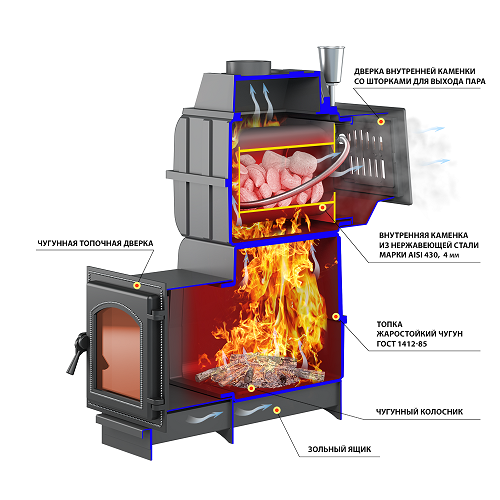 Материал закрытой каменки:Нержавеющая сталь (AISI 430)