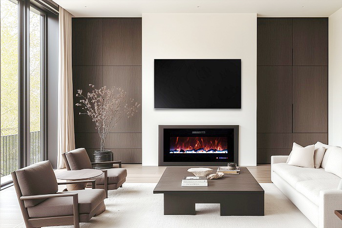 Линейные электрические камины серии Galaxy, выполненные в современном дизайне, подходят для монтажа в нишу или стену.