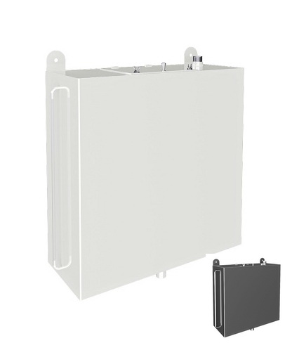 Настенный бак вместимостью 50 литров. На баке три резьбы дюймовые с наружной резьбой и одна резьба ½ с внутренней резьбой. Используется как часть системы получения горячей воды, так и самостоятельно для хранения холодной воды