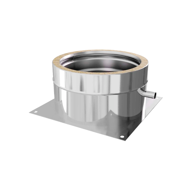 Утепленный элемент для перераспределения веса дымохода. Используется для установки ТОЛЬКО на пол (на ровные твердые поверхности). Внутренний контур изготовлен из коррозионностойкой нержавеющей стали AISI 316L толщиной 0,8 мм. Внешний контур выполнен из аустенитной стали AISI 304 толщиной 0,5 мм. Теплоизоляция - из базальтовой ваты, это позволяет свести к минимуму образование конденсата и будет способствовать быстрому прогреву дымоходного канала и выходу системы в рабочий режим. Холодная формовка раструбного соединения с идеальной геометрией и газоплотностью. Лазерная сварка встык обеспечивает тонкий и прочный шов, увеличивая в разы срок эксплуатации. Рабочая температура до 450°С.