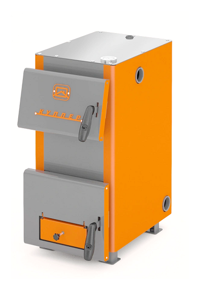 Принцип действия водогрейных котлов модельного ряда «Куппер ОК/ОВК (2.0)» основан на передаче энергии, высвобождаемой при сжигании топлива, теплоносителю. Эффективность теплообмена достигается благодаря развитой поверхности водяной рубашки и многорядному шахматному расположению труб в теплообменнике, обеспечивающих теплосъём со всех поверхностей топки котла. Внутри топки, между трубами теплообменника, расположен козырёк, обеспечивающий оборот топочных газов в трубном теплообменнике. Такая система теплообмена позволяет наиболее эффективно нагревать теплоноситель. Конструкция водяного контура способствует созданию направленного потока теплоносителя и исключает застойные зоны. Внутри теплообменника, между трубами, расположен козырёк обеспечивающий оборот топочных газов в трубном теплообменнике. Съёмная конструкция козырька позволяет легко прочистить трубный теплообменник от сажи. Все модели могут быть укомплектованы блоком ТЭНов, обеспечивающим поддержание температуры теплоносителя при завершении горения топлива или даже в автономном режиме электроотопления. На боковых сторонах расположено по два штуцера: вверху — для подключения подачи воды и внизу - для подключения обратки. Таким образом можно легко подключить котёл к отопительной системе с любой стороны. ВНИМАНИЕ! Не рекомендуется диагональное присоединение патрубков подачи и обратки. Рекомендуется контур отопления присоединять с одной стороны. При диагональном подключении, в момент отключения электричества, или выходе из строя циркуляционного насоса, будет затруднена циркуляция и возникнут локальные закипания теплоносителя, которые могут привести к выходу из строя котла и системы отопления в целом. Блок ТЭНов устанавливается в свободный нижний штуцер. Корпус изготавливается из низкоуглеродистой конструкционной стали толщиной 3мм. Для обеспечения достаточной прочности водяной рубашки стенки наружного и внутреннего корпусов котла скреплены стяжками. Боковые поверхности котла теплоизолированы базальтовым картоном и облицованы декоративными панелями, что уменьшает рассеивание тепла в котельном помещении и обеспечивает безопасную температуру наружных поверхностей. Котёл оснащен двумя дверками: зольно-растопочной, прочистной/ загрузочной. Зольно-растопочная дверца оснащена заслонкой подачи воздуха под колосник позволяющей управлять интенсивностью горения в диапазоне от 30% до 100%. Настройка может быть как ручной - при помощи винта, так и автоматической - при установке регулятора горения (дополнительно приобретаемый аксессуар), для которого с левой боковой стороны котла предусмотрен штуцер G3/4’’. Изнутри дверка защищена от жара экраном. Прочистная/загрузочная дверца обеспечивает доступ к трубам теплообменника, а также через неё допускается производить дозагрузку топлива. На котёл может быть установлена газовая или пеллетная горелка соответствующей мощности. Так же легко осуществляется демонтаж этих устройств, при необходимости возвращения к твёрдому топливу. Рекомендуется использовать горелки производства компании «Теплодар» для перевода котла на отопление с использованием газового или пеллетного топлива. ВНИМАНИЕ! Рекомендуется использовать выносные пульты управления, позволяющие контролировать работу блока ТЭНов, а также