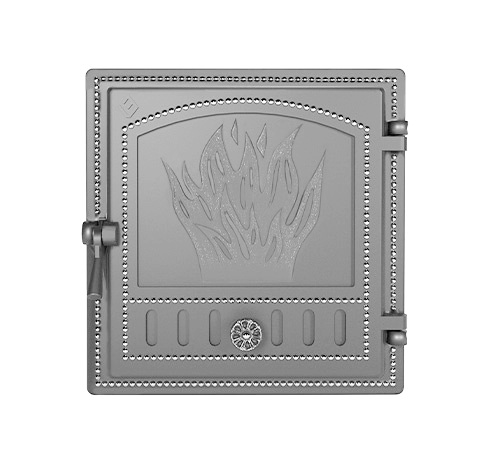 Двери изготовлены из качественного чугуна по ГОСТ 1412-85, производятся в комплектациях с глухим полотном или стеклом. Ручки дверей также сделаны из чугуна.