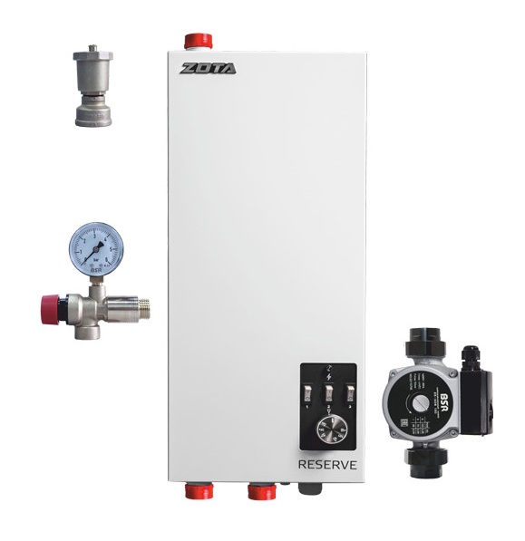модельный ряд от 3 до 9 квт; џ присоединительные размеры патрубков 1”; џ два патрубка подачи позволяют врезку котла в систему отопления с использованием различных гидравлических схем; џ дополнительный патрубок 1/2" для подключения предохранительного клапана. Безопасность џ теплоизолированный корпус; џ порошковая покраска всех элементов; о о џ регулировка температуры нагрева воды от +25 С до + 85 С; о џ датчик перегрева теплоносителя на +95 С; џ электромагнитный контактор в цепи работы котла. Надежность џ блок ТЭН из нержавеющей трубки специальной конструкции с пониженной ваттной нагрузкой; џ возможно использование незамерзающих теплоносителей; џ рабочее давление 6 атмосфер; џ удобство сервисного обслуживания џ силовая часть котла спроектирована с трехкратным запасом. Экономичность џ экономичная, простая, малогабаритная модель; о џ капиллярный термостат с инерционностью не более 3 С; џ возможно подключение внешнего хронотермостата; џ три ступени мощности для эффективного расходования электроэнергии; џ бесшумная работа силового блока за счет применения электромагнитных реле в коммутирующей схеме. Комплект поставки џ электрокотел џ воздухоотводчик 1/2" џ муфта переходная 1/2"-1" џ манометр BSR, 6 бар, диаметр 50, 1/4" џ удлинитель 1/2"x30 џ предохранительный клапан,3 бара, с отверстием под манометр 1/4" џ насос BSR 25-60 130 или RING 25-40 130