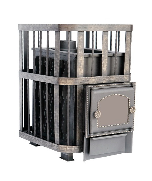 Кованная сетка для камней с аутентичным узором вмещает большую массу камней, что позволяет получить оптимальное соотношение температуры и влажности в парной, создать комфортный пар и атмосферу в парном помещении.