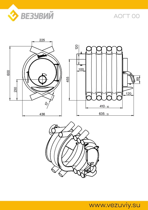 Печь отопительная ВЕЗУВИЙ АОГТ 00 С предназначена для обогрева бытовых нежилых и промышленных помещений. Печь рассчитана на обогрев помещений объёмом до 100 кубических метров.