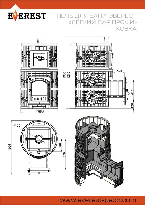 Банные печи Эверест Лёгкий Пар Профи (Жаростойкий чугун (ГОСТ 1412-85))