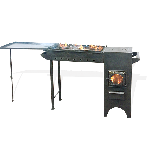 Кухня-мангал - легко разбирается и собирается, что тоже немаловажно. На зимний период его можно убрать на хранение. В разобранном состоянии кухня-мангал занимает мало места. Мангал изготовлен из высококачественного металла толщиной 3-6 мм 09Г2С ГОСТ 19281-2014 (в быту эту сталь еще называют «котловой»). Покрыт жаропрочной краской. Удобен в эксплуатации, многофункционален.