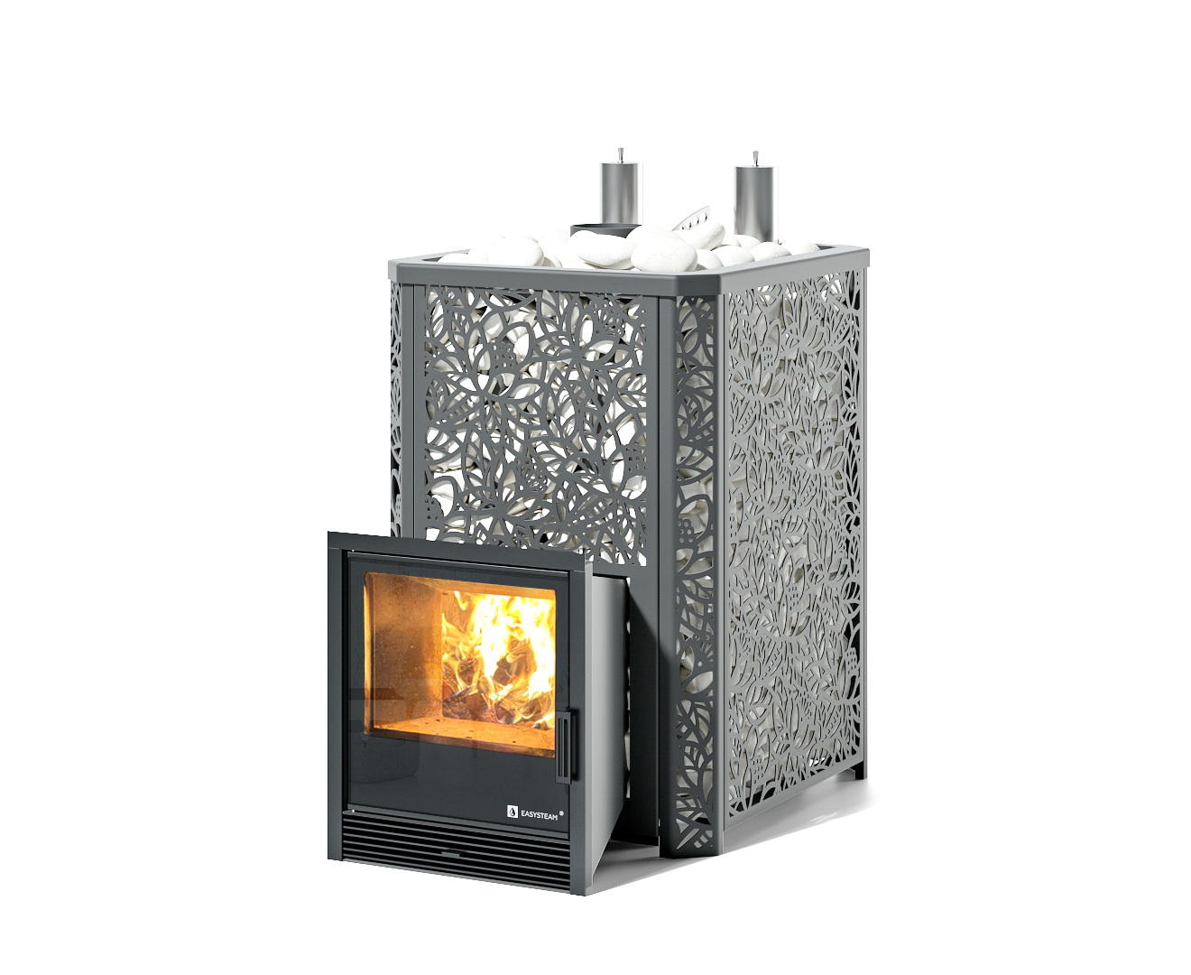 Печь оснащена съёмной закрытой каменкой, позволяющей разогревать находящиеся в ней камни до температуры 600 градусов.
