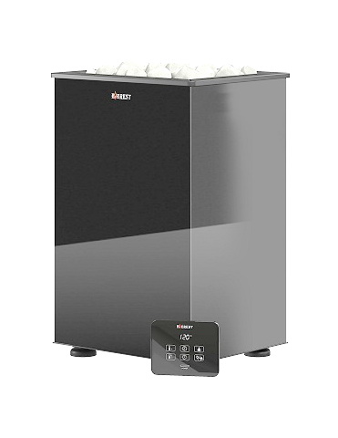 Электрическая печь для бани и сауны EVEREST «BLACK CRYSTAL» предназначена для прогрева воздуха в парной. Её современный и строгий дизайн впишется в любую парную. Корпус сделан из высокопрочной стали, а облицовка из закалённого стекла. В комплекте с печью поставляется многофункциональный пульт управления и датчик температуры со всеми необходимыми кабелями для подключения. Кабель для подключения пульта 6 метров, а кабель для подключения датчика температуры 3 метра. Дизайн пульта выполнен в схожем стиле с электрокаменкой. Выносной датчик температуры позволит точно управлять температурой печи в парной. Встроенный в электрокаменку конвектор, позволит максимально быстро распределить мелкодисперсный пар и воздух.
