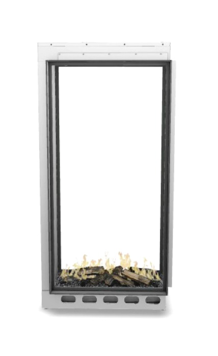 Модель имеет закрытую конструкцию газового камина с тремя стеклами для панорамного обзора пламени и с зеркальной задней стенкой для увеличения объема топки. В общественных зонах, ресторанах, а также в других пространствах с большим потоком людей такое решение сохранит первозданный вид очага. Стекла в модели быстросъемные, благодаря чему можно быстро и без демонтажа получить доступ к топочной корзине, чтобы дополнить ее декоративными элементами по вкусу.