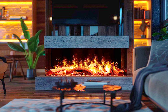 Чтобы стенки камина не запотевали, мощные вентиляторы непрерывно втягивают водяной пар. Из-за движения пара пламенные языки подрагивают как настоящие, что также увеличивает реалистичность камина.
