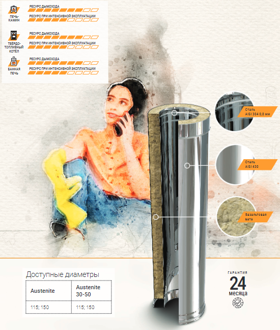 Документация Austenite HF (AISI 304 0,8 мм).pdf Цена 1 617 руб. Раздел: Нержавеющие дымоходы Производитель: FERRUM Технические характеристики Дымоход GS Дымоход HF Дымоход HF PLUS Austenite BLACKSIDE FERRUM Элементы дымохода ТИС Трубы Описание товара