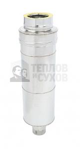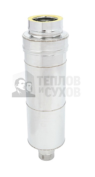 УПШ-Б ТермоВент – это пожаробезопасный узел прохода перекрытия для безчердачных бань, бань-бочек, домов и строений. УПШ состоит из четырёх контуров трубы. Первый контур труба дымохода Д 115, 430, 0,8 мм. Второй контур труба Д 150, 430, 0,5 мм. Третий контур труба Д 210, 430, 0,5 мм. Четвёртый контур труба Д 260, 430, 0,5 мм. Охлаждение трубы дымохода осуществляется двумя внутренними потоками по полостям между трубами диаметров 115, 150, 210. По полости между трубой Д 115 и Д 150 осуществляется восходящий поток воздуха. По полости между трубой Д 150 и Д 210 осуществляется нисходящий поток воздуха. Между трубами диаметром 210 и 260 изоляционный слой из базальтового цилиндра, который служит дополнительной термоизоляцией внешнего контура УПШ, предотвращая теплопередачу на перекрытие или стены. И препятствует образованию конденсата.
