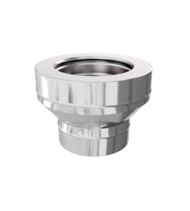 Элемент дымоходного канала для перехода с одностенных элементов на двустенные утепленные. Внутренний контур изготовлен из коррозионностойкой нержавеющей стали AISI 316L толщиной 0,8 мм. Внешний контур выполнен из аустенитной стали AISI 304 толщиной 0,5 мм. Теплоизоляция в верхней части элемента выполнена из керамического волокна. Холодная формовка раструбного соединения с идеальной геометрией и газоплотностью. Лазерная сварка встык обеспечивает тонкий и прочный шов, увеличивая в разы срок эксплуатации. Рабочая температура до 600°С.