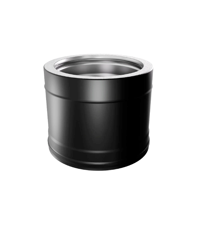 Утепленный элемент предназначен для отвода дымовых газов на неотапливаемых прямолинейных участках дымохода. Важно! За счет раструба полезная длина элемента на 60 мм меньше, чем номинальная. Внутренний контур изготовлен из коррозионностойкой нержавеющей стали AISI 316L толщиной 0,8 мм. Внешний контур выполнен из стали AISI 430 толщиной 0,5 мм, окрашен матовой черной термостойкой эмалью, что исключает появление следов побежалости. Теплоизоляция выполнена из керамического волокна, это позволяет свести к минимуму образование конденсата и будет способствовать быстрому прогреву дымоходного канала и выходу системы в рабочий режим. Холодная формовка раструбного соединения с идеальной геометрией и газоплотностью. Лазерная сварка встык обеспечивает тонкий и прочный шов, увеличивая в разы срок эксплуатации. Рабочая температура до 600°С.