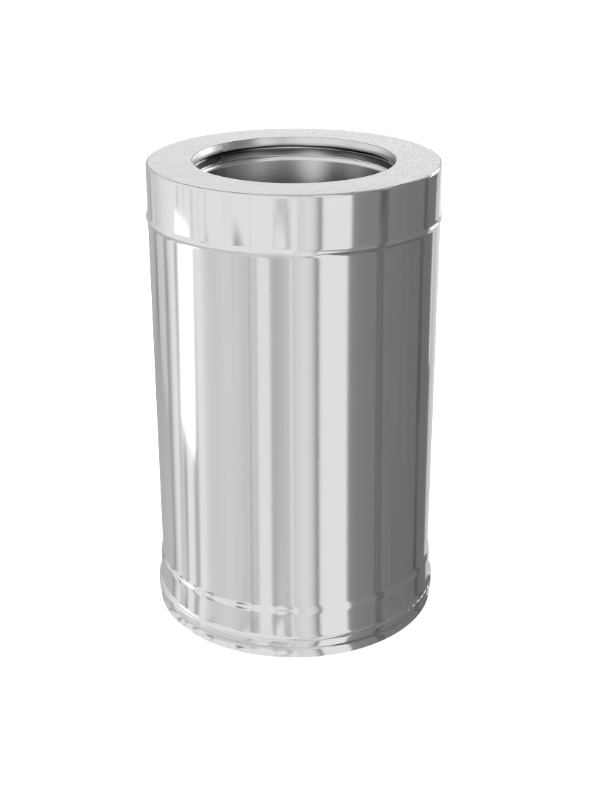Утепленный элемент предназначен для отвода дымовых газов на неотапливаемых прямолинейных участках дымохода. Важно! За счет раструба полезная длина элемента на 60 мм меньше, чем номинальная. Внутренний контур изготовлен из коррозионностойкой нержавеющей стали AISI 316L толщиной 0,8 мм. Внешний контур выполнен из аустенитной стали AISI 304 толщиной 0,5 мм. Теплоизоляция - из керамического волокна, это позволяет свести к минимуму образование конденсата и будет способствовать быстрому прогреву дымоходного канала и выходу системы в рабочий режим. Холодная формовка раструбного соединения с идеальной геометрией и газоплотностью. Лазерная сварка встык обеспечивает тонкий и прочный шов, увеличивая в разы срок эксплуатации. Рабочая температура до 600°С.