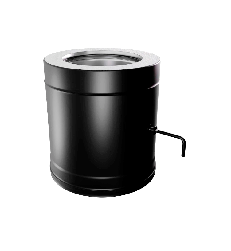 Элемент для регулировки тяги внутри дымового канала. Согласно требованиям безопасности, заслонка полностью не перекрывает сечение канала. Внутренний контур изготовлен из коррозионностойкой нержавеющей стали AISI 316L толщиной 0,8 мм. Внешний контур выполнен из стали AISI 430 толщиной 0,5 мм, окрашен матовой черной термостойкой эмалью, что исключает появление следов побежалости. Теплоизоляция выполнена из керамического волокна, это позволяет свести к минимуму образование конденсата и будет способствовать быстрому прогреву дымоходного канала и выходу системы в рабочий режим. Холодная формовка раструбного соединения с идеальной геометрией и газоплотностью. Лазерная сварка встык обеспечивает тонкий и прочный шов, увеличивая в разы срок эксплуатации. Рабочая температура до 600°С.