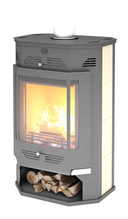 Камин представляет собой вертикальную топку из конструкционной стали, закрытую комбинированным кожухом. Передняя и задняя стенки камина представляют собой конвекторы, обеспечивающие высокую динамику нагрева помещения, а боковые стенки — конвекторы декорированные сменными керамическими плитками. Главными особенностями камина «РУМБА» являются: • прекрасный обзор огня за счет большого панорамного стекла SCHOTT ROBAX® диагональю 580 мм, а также боковых узких стекол диагональю 440 мм. • возможность монтажа дымохода как на задней стенке, так и на крышке камина; • система отбойников, находящаяся внутри топки обеспечивает высокий КПД и снижает расход топлива.
